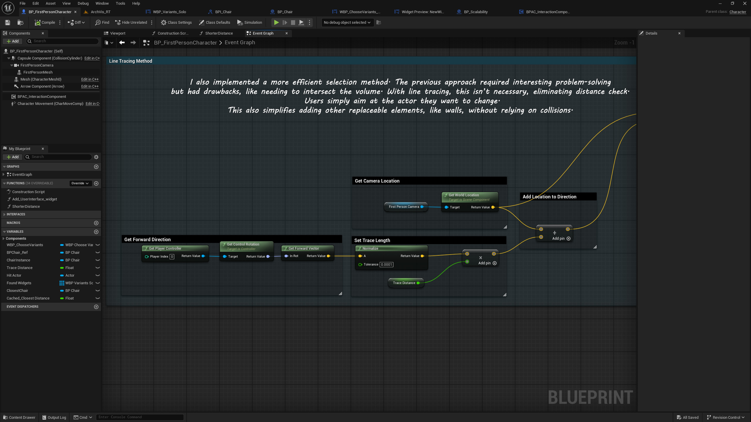 but had drawbacks, like needing to intersect the volume. With line tracing, this isn’t necessary, eliminating distance check.