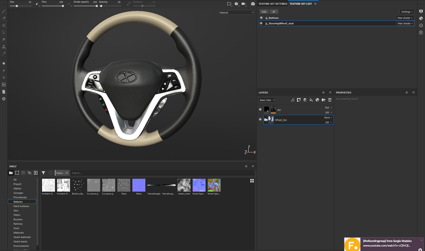 Subdivision Modeling and Texturing of a Steering Wheel. During this project, I utilized Foundry's Modo and Colorway (now discontinued). The attached video showcases Colorway in action, demonstrating its capability to change colors and textures in real-time without the need for re-rendering.